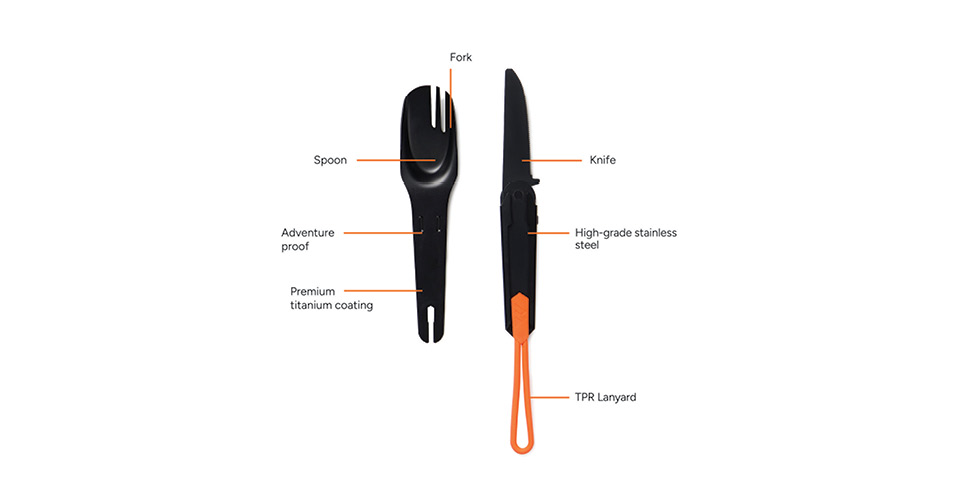 Built to Last, Made to Explore. The Nordic Drift Trail 4-in-1 Outdoor Cutlery is a premium eating tool designed for outdoor adventures. Combining a fork, knife, and spoon in one compact tool, it’s made from high-grade stainless steel with an extra durable, food-safe titanium coating for long-lasting use. Easy to clean and built to withstand frequent use on the trail or at camp, it includes a silicone strap to keep the cutlery neatly secured and easy to carry. All Nordic Drift products are intensely tested for quality. Because we strongly believe in the performance and durability of our gear, every item is backed by a 5-year warranty on manufacturing defects.